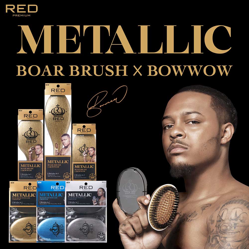 Red by KISS® Bow Wow X Pocket Wave Premium Metallic 2-in-1 Boar Brush with Case (SILVER)