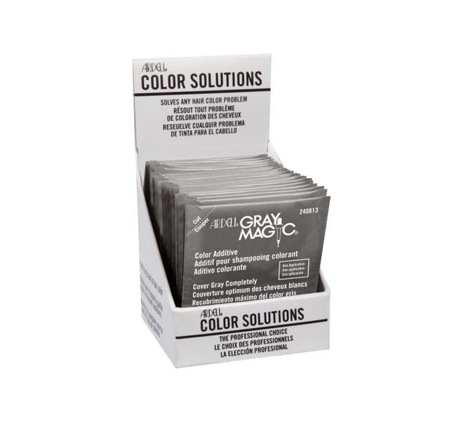 Ardell Gray Magic will increase coverage to the most gray-resistant hair and is compatible with any brand of hair color and all additives. It will extend the life of hair color and decrease fading. It Is formulated to help hair color penetrate deeper into the cortex, which makes color more vibrant and gray hair covered better. It is also great for toning down ashy and green tones. Gray Magic works well because gray hair is the result of red and yellow color pigment loss. When added to shampoos or conditioners, it will prevent fading and oxidation for tinted red or warm colors.