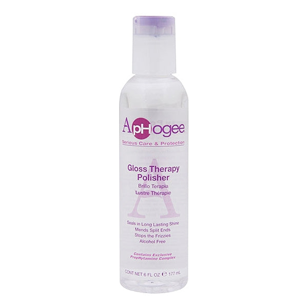 ApHogee Gloss Therapy Polisher seals in long lasting shine, mends slipt ends, stop the frizzies, alcohol free. Optimized for maximum results and contain our exclusive PropHytamine Complex, utilizing precise levels of protein for strength, emollients for shine and humectants for softness. Repair and protect your hair with ApHogee. Restores brilliant, healthy-looking shine to all hair types. Enhances color and highlights. Protects hair from environmental and styling damage. UV protectant.