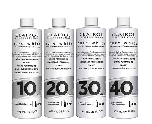 Clairol Professional® 10, 20, 30, 40 vol. Pure White Hair Developers for Lightening & Gray Coverage (16 oz.) - 10 volume is backordered and will ship as soon as it is back in stock.