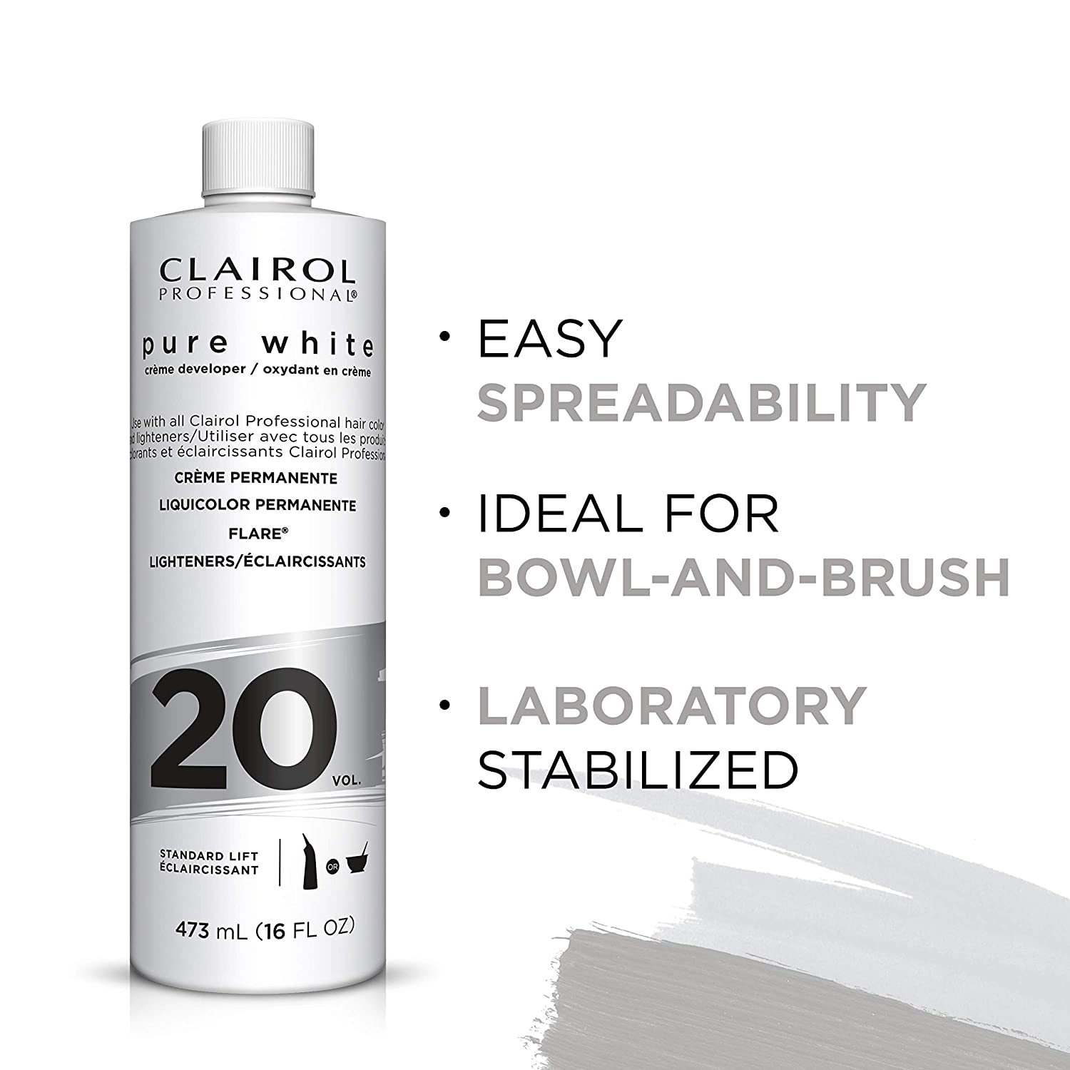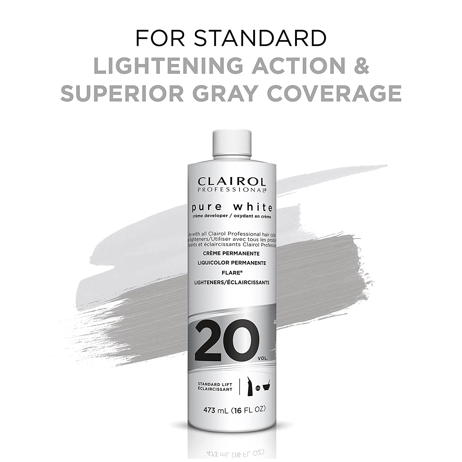 Clairol Professional® 20 vol. Pure White Hair Developers for Lightening & Gray Coverage (16 oz.) - 4 oz is backordered and will ship as soon as it is back in stock.