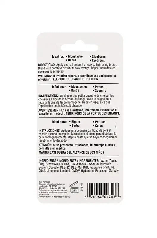 - Safe and Effective Styling Formula: Look and feel like a winner with the Clubman Moustache Wax - Neutral. You want nothing but the best, we’re here to give it to you! This wax uses natural beeswax combined with other beneficial ingredients that gives you unbelievable hold and style. Features a neutral color that lets your true nature show! Be bold and face the day with pride.