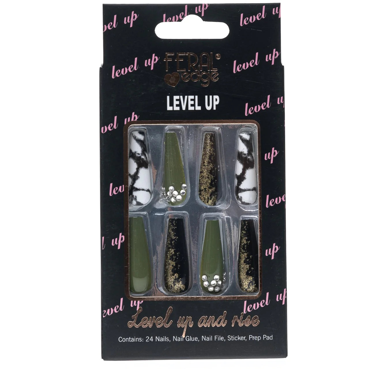 CONTAINS 24 NAILS + NAIL GLUE + NAIL FILE + PREP PAD + MANICURE STICK