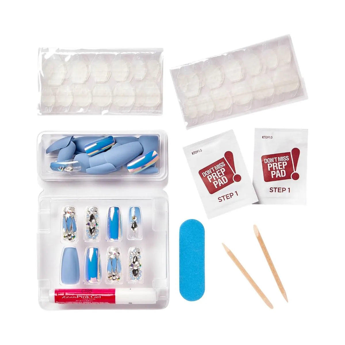 - Includes 30 Nails, Pink Gel Glue NET WT 2 g (0.07 oz.), 48 Adhesive Tabs, Mini File, 2 Manicure Sticks, 2 Prep Pads