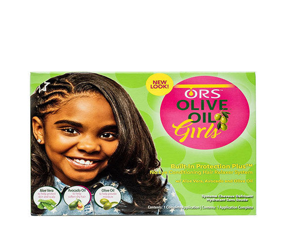 The ORS Olive Oil No-Lye Conditioning Hair Relaxer For Girls 1kit is formulated with built-in protection to prevent over processing as it gently relaxes and smooths the hair. Rich Olive and Avocado Oils moisturize and condition while Aloe Vera protects the skin and scalp. The end result is silkier, softer hair that is easier to detangles and care for.