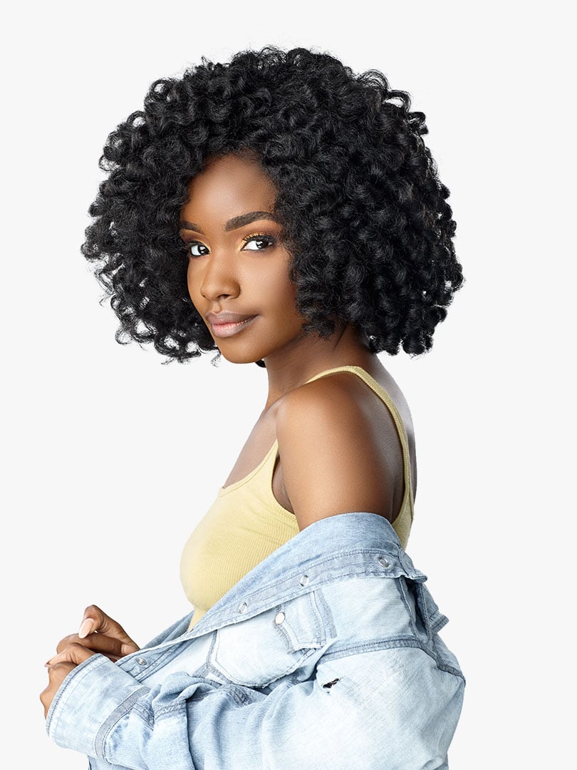 Your leave-out hair should be stretched or lightly blow-dried. There are many ways to stretch natural hair: roller sets, banding, braid outs, etc… Use whichever method you like best.