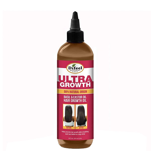 GROWTH OIL: Difeel Ultra Growth Hair Oil with Basil & Castor Oil is a unique nature based essential oil formulation infused with Basil & Castor Oil which is known to help promote hair growth.